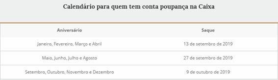 Sim. A Caixa disponibilizou no seu site o calendário de saque de contas ativas(referente a contratos de trabalho vigentes) e inativas (de contratos já finalizados) no valor de R$500 a partir de Setembro de 2019. Confira: